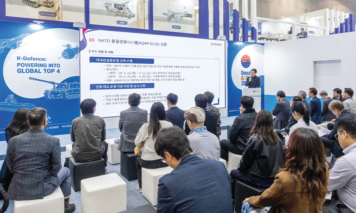 방위사업청은 킨텍스에 통합홍보관을 운영하며 국방 R&D–획득–시험평가–품질보증에 이르는 전 과정을 한눈에 소개했다. 홍보관은 방위사업청을 중심으로 국방과학연구소, 국방신속획득기술연구원, 국방기술품질원, 국방기술진흥연구소 등 4개 출연기관이 함께 꾸렸다. 비즈니스 데이에는 G2G 면담, 국제 방산협력·공동