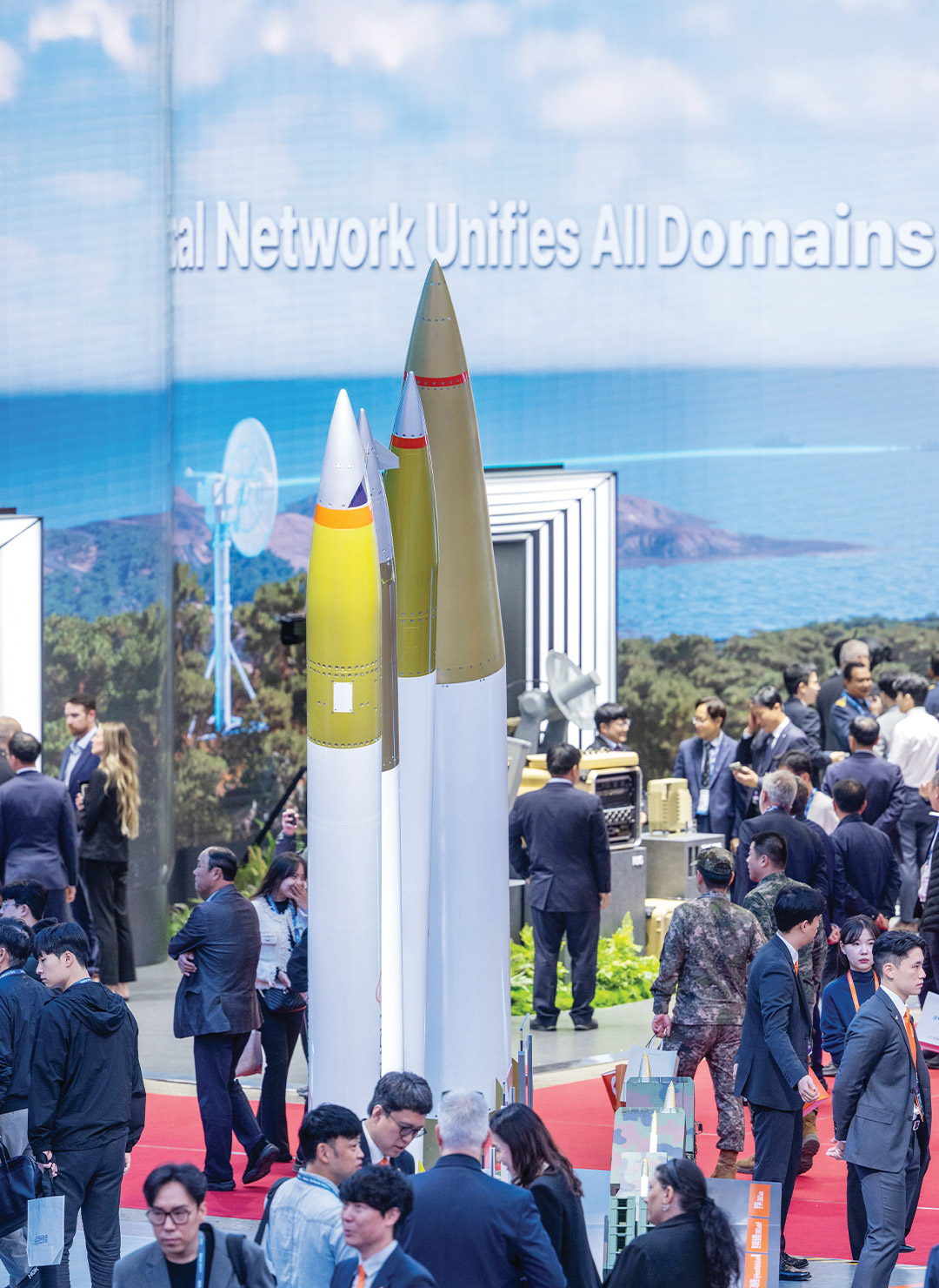 전시장 전반에는 차세대 전투기·헬기·무인기, 신형 미사일과 지상 무인지휘 솔루션, 자주포·전차·다연장로켓·지대공 체계 등이 한자리에 모여 전장 생태계를 입체적으로 보여줬다. 항공 분야는 초음속·스텔스 형상, 항전장비, 훈련·정비(MRO)까지 수명주기 관점을 강조했고, 지상·유도무기관은 실물 전시와 체험