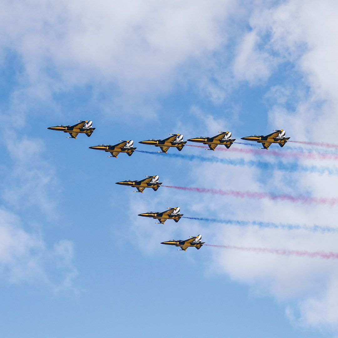 같은 과학·체험 프로그램과 드론 축구·레이싱 등 참여형 이벤트가 이어졌다. 하늘에서는 공군 특수비행팀 블랙이글스의 에어쇼가 펼쳐졌고, KF-21의 연속 롤 기동과 선회 비행이 이어졌다. 방위사업청은 너프건 사격, 콘홀 게임, 타이머 맞추기, 무기체계 달고나 뽑기 등 체험 부스를 운영해 가족 단위 관람객에게