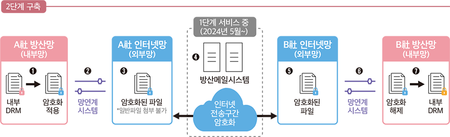 1, 2단계에 걸쳐 구축했다. 현재 1단계 시스템은 2024년 5월부터 서비스를 제공하고 있으며, 2단계는 2025년 11~12월 구축·안정화를 거쳐 2026년 1월 서비스가 예정되어 있다. 고도화의 핵심은 첨부파일의 보호다. 파일을 보낼 때 첨부파일에 대한 암호화 기능과 첨부되는 파일에 대한
